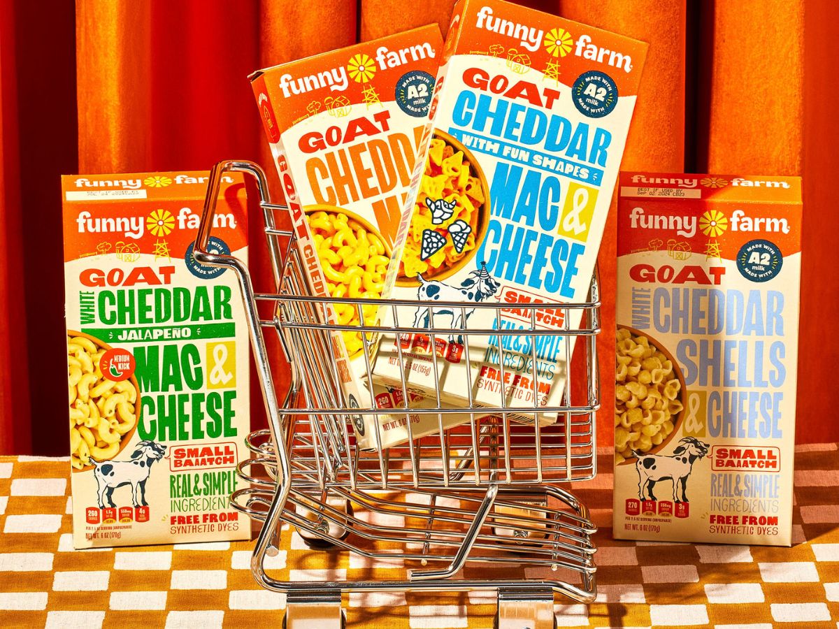 Buy any box of Funny Farm Goat Cheddar Mac and Cheese at Whole Foods.